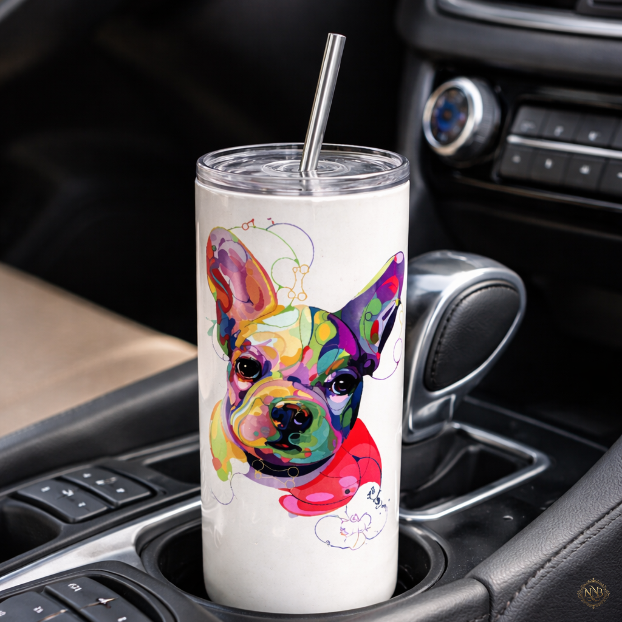 Show your love for Frenchies with this vibrant French Bulldog sublimation tumbler. Designed with a bold, colorful dog illustration and printed using high-quality sublimation for a smooth, long-lasting finish.